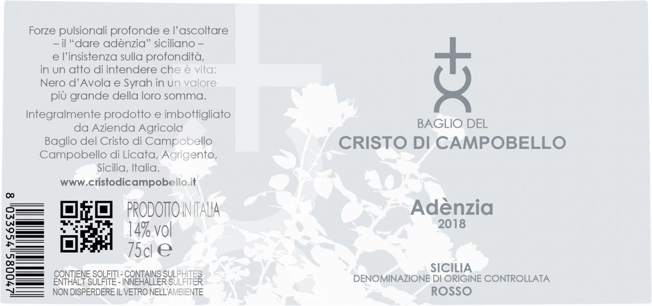 Integralmente prodotto e Imbottigliato nella propria cantina Azienda Agricola Baglio del Cristo di Campobello Baglio del Cristto di Campobello S.R.L. - C/Da Favarotta S.S. 123 KM 19+200 Campobello di Licata (AG) Italia
