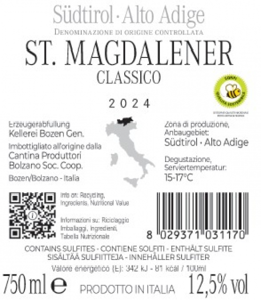 Imbottigliato all'origine dalla Cantina Produttori Bolzano Soc. Coop.